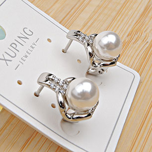 Серьги с английским замком с родиевым покрытием с искусственным жемчугом Майорка (покрытие натуральный перла арт.18 1904(id282268)