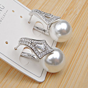 Серьги с английским замком с родиевым покрытием с искусственным жемчугом Майорка (покрытие натуральный перла арт.18 1913(id282277)