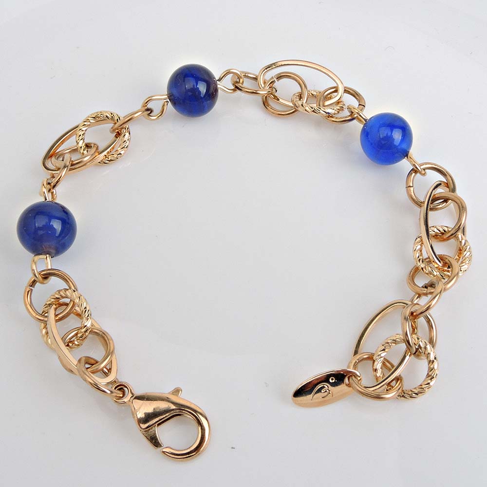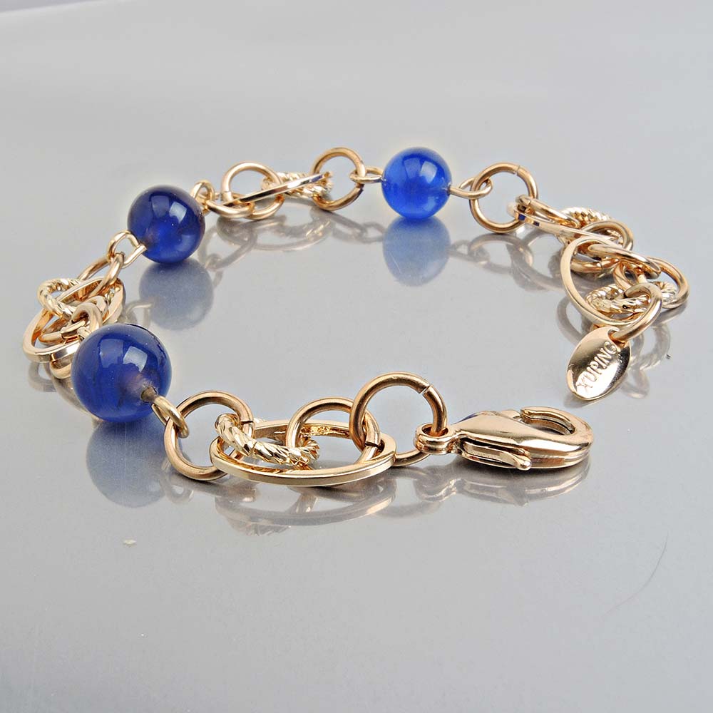 дл 18см браслет(вставки:улексит,синий,покрытие:золото)