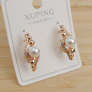 Серьги с английским замком с золотым покрытием 18K 1 мкр с искусственным жемчугом Майорка (покрытие натуральный перла арт.18 1661(id282025)