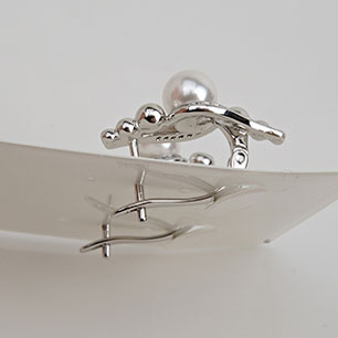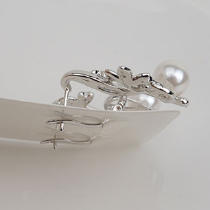 Серьги с английским замком с родиевым покрытием с искусственным жемчугом Майорка (покрытие натуральный перла арт.18 1672(id282036)