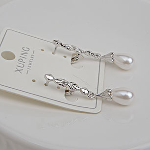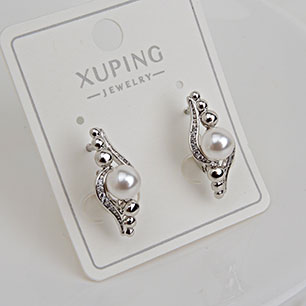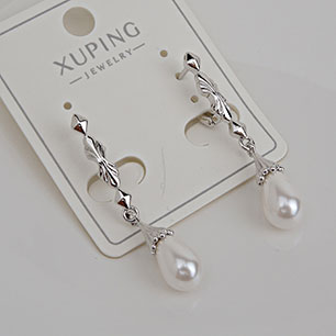 Серьги с английским замком с родиевым покрытием с искусственным жемчугом Майорка (покрытие натуральный перла арт.18 1664(id282028)