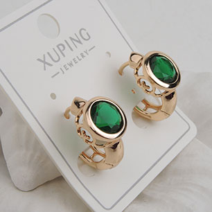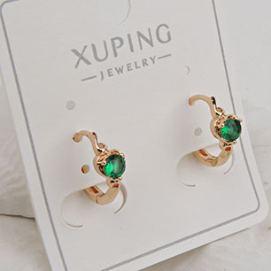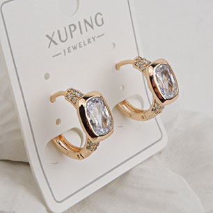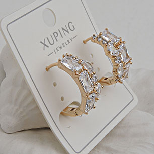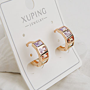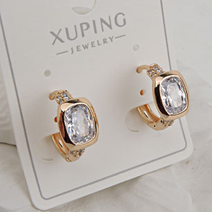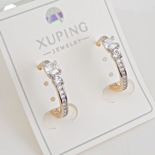 Серьги с замком кольцо с золотым покрытием 18K 1 мкр с цирконами (фианитами) арт.18 1715(id282079)
