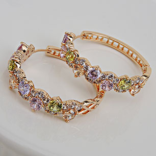 Серьги с замком кольцо с золотым покрытием 18K 1 мкр с цирконами (фианитами) арт.18 1725(id282089)