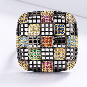 Кольцо в винтажном стиле с родиевым покрытием со стеклянными вставками арт.22 7203(id288000)