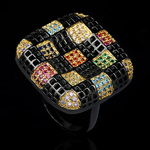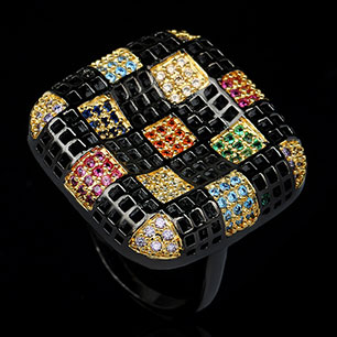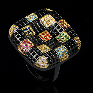 Кольцо в винтажном стиле с родиевым покрытием с эмалью арт.22 7708(id269496)