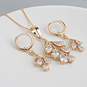 Комплект свадебный бело-серебристый с золотым покрытием 18K 1 мкр с цирконами (фианитами) арт.XG23 0120(id208732)