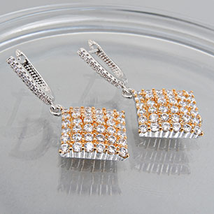 серьги(вставки:цирконы белые,покрытие:родирование), длина 3см,ширина 2см