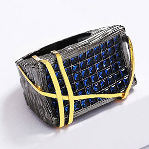 Кольцо в винтажном стиле с родиевым покрытием со стеклянными вставками арт.22 7203(id288000)