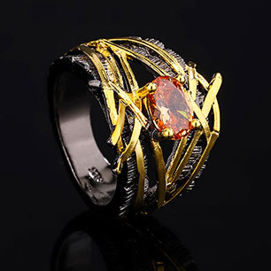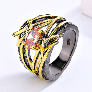 Кольцо в винтажном стиле с золотым покрытием 14K 1 мкр с цирконами (фианитами) арт.22 7272(id288053)