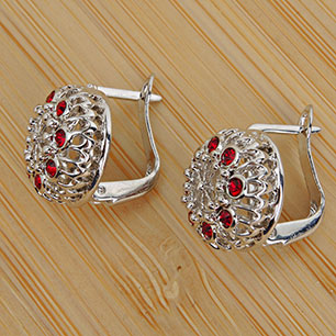 Серьги с английским замком красные с родиевым покрытием с цирконами (фианитами) арт.XG10 1410-3(id193663)