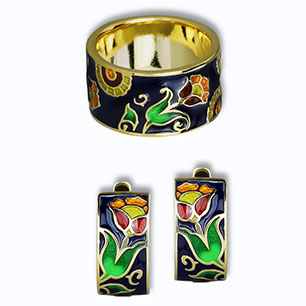 Серьги с английским замком в винтажном стиле с золотым покрытием 14K 1 мкр с эмалью арт.22 7253(id288036)
