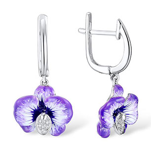 Серьги с английским замком в винтажном стиле с родиевым покрытием с эмалью арт.22 7199(id273463)