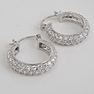Серьги с замком кольцо с родиевым покрытием с цирконами (фианитами) арт.XG10 0491(id193552)