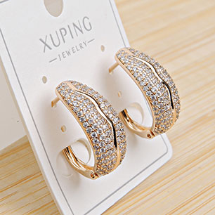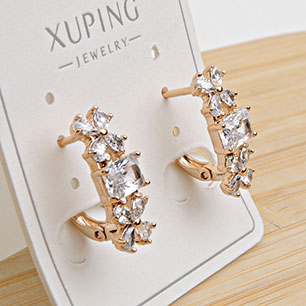 Серьги с замком кольцо с золотым покрытием 18K 1 мкр с цирконами (фианитами) арт.18 1875(id282239)