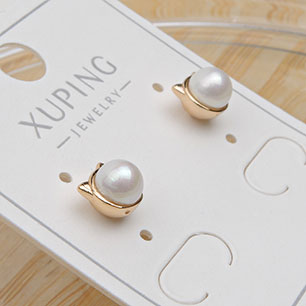 Серьги-пуссеты на гвоздиках с золотым покрытием 18K 1 мкр с искусственным жемчугом Майорка (покрытие натуральный перла арт.18 1888(id282252)