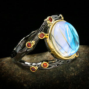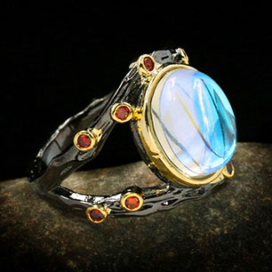 Кольцо в винтажном стиле с золотым покрытием 14K 1 мкр с лунным камнем арт.22 7154(id287978)