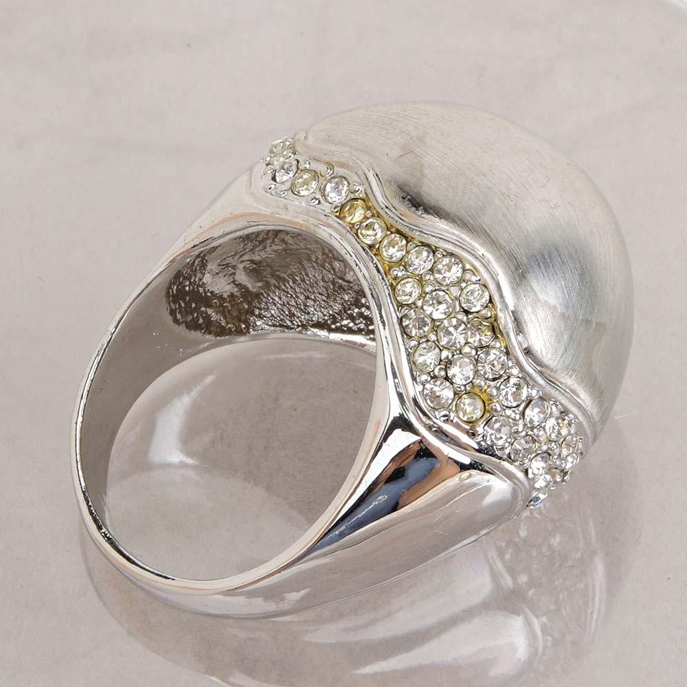 Кольцо белое с гальваническим покрытием под серебро со стразами