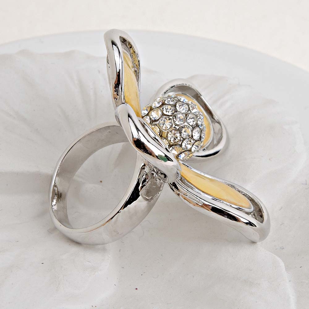 Кольцо белое с родиевым покрытием со стразами
