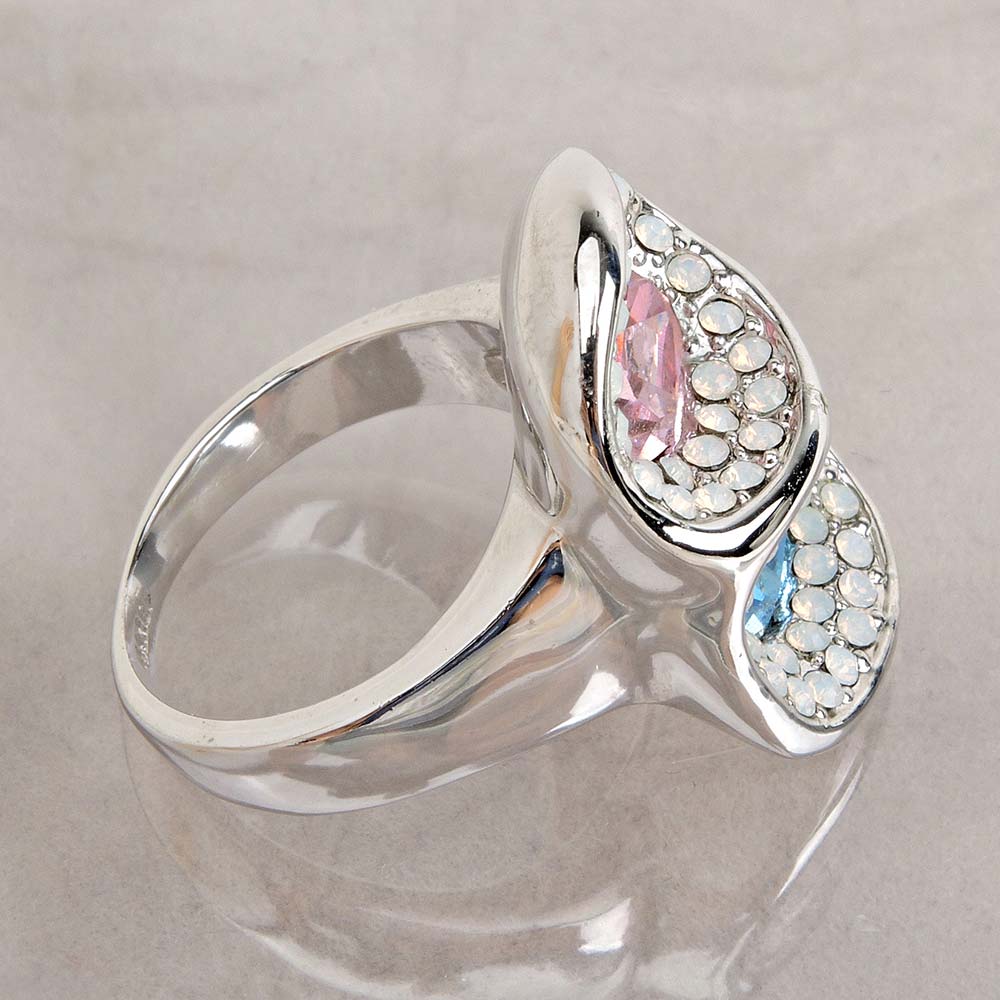 Кольцо многоцветное с родиевым покрытием с кристаллами SWAROVSKI