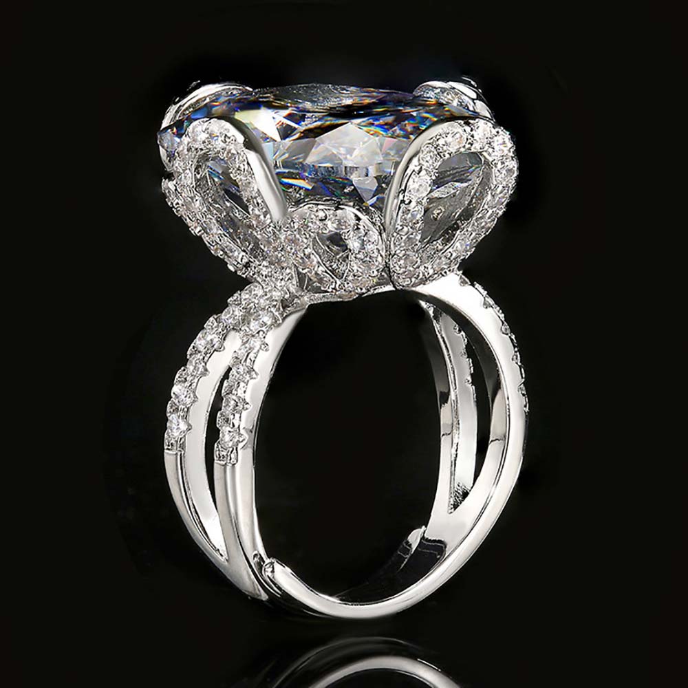 Кольцо с родиевым покрытием с цирконами (фианитами)