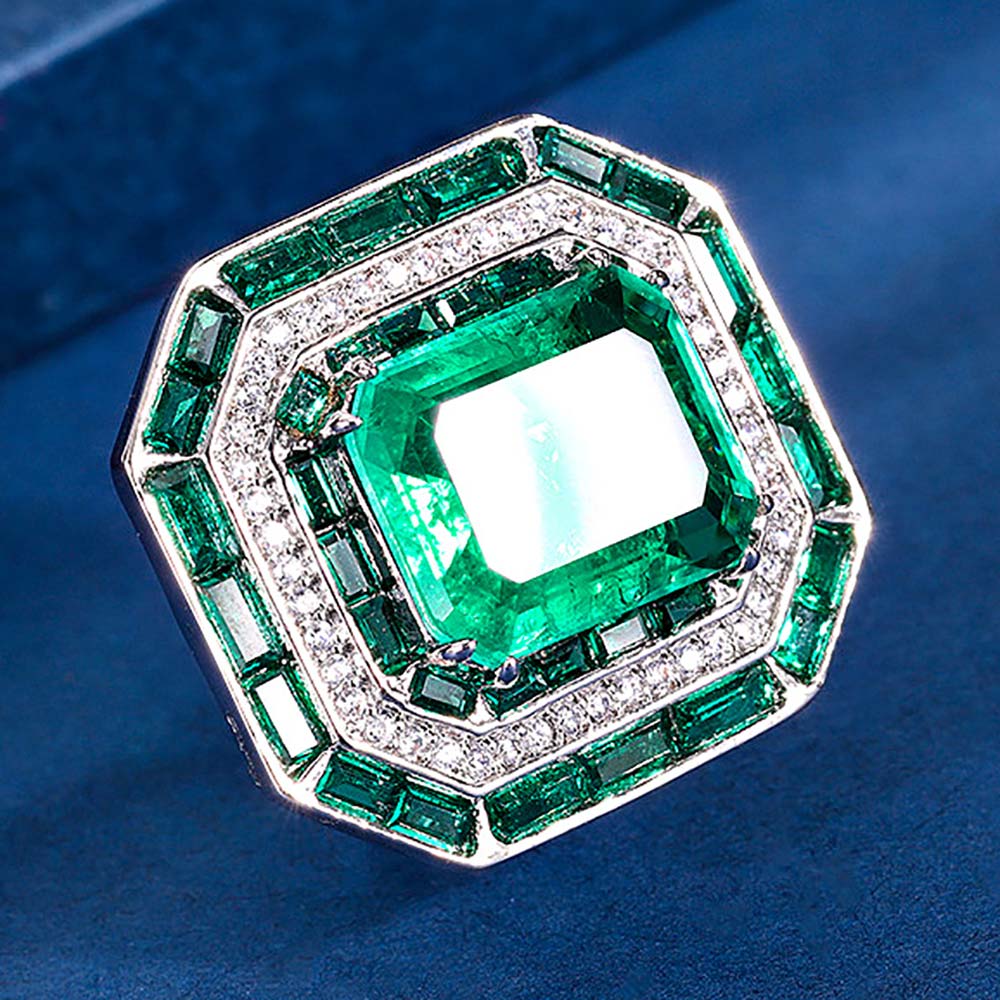 Кольцо с родиевым покрытием с цирконами (фианитами)