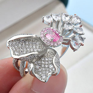 Кольцо с родиевым покрытием с цирконами (фианитами)