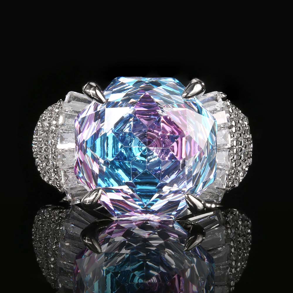 Кольцо с родиевым покрытием с цирконами (фианитами)
