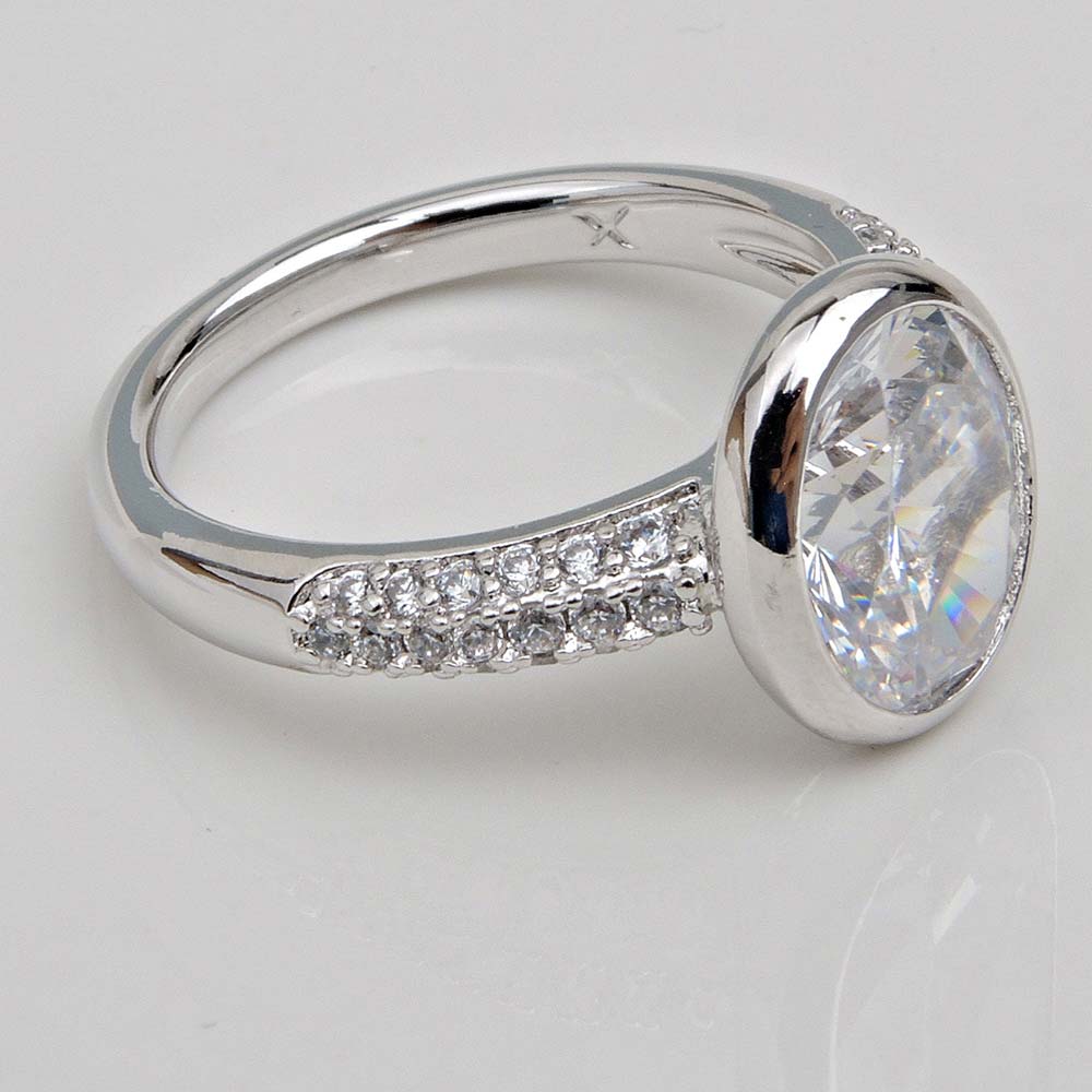 Кольцо с родиевым покрытием с цирконами (фианитами)