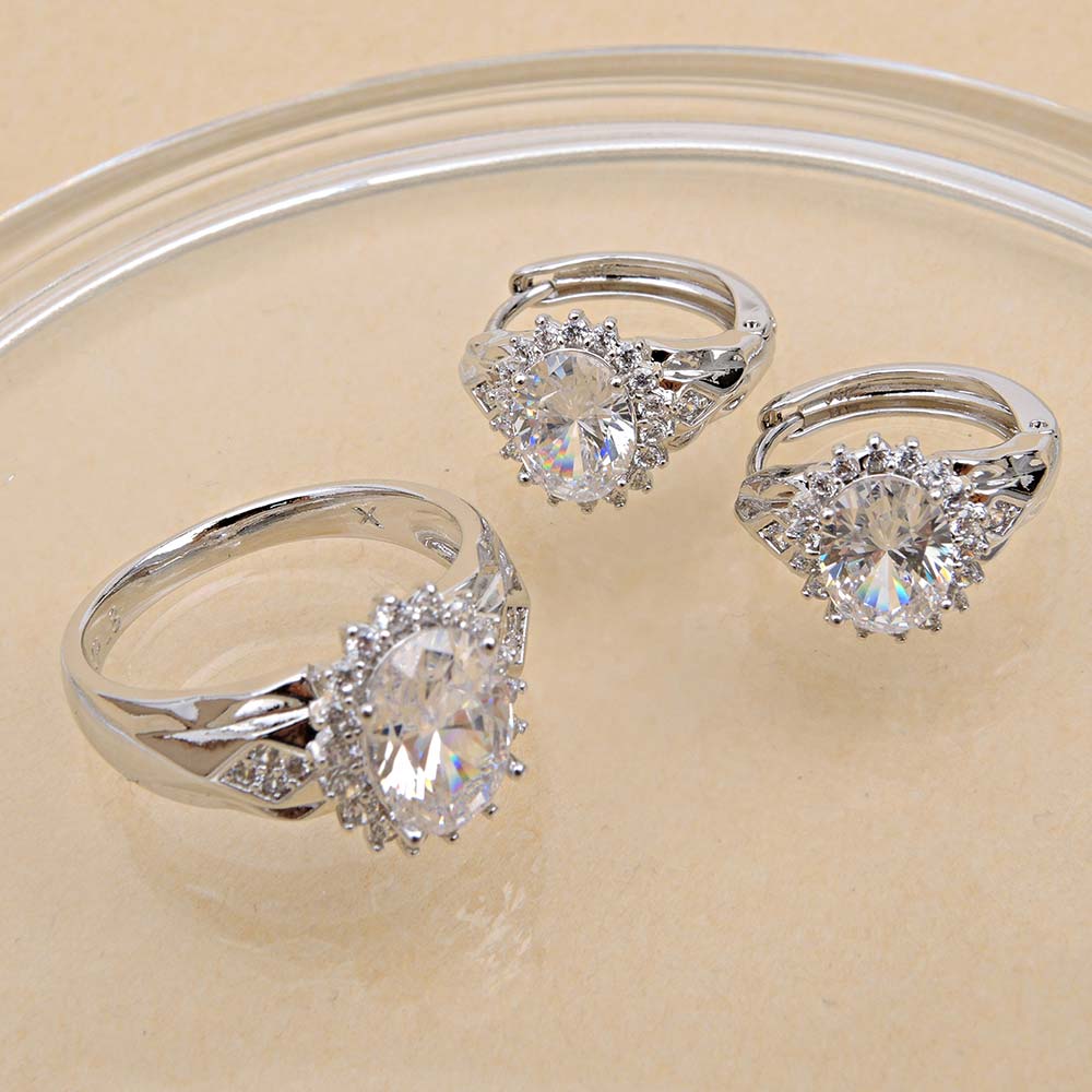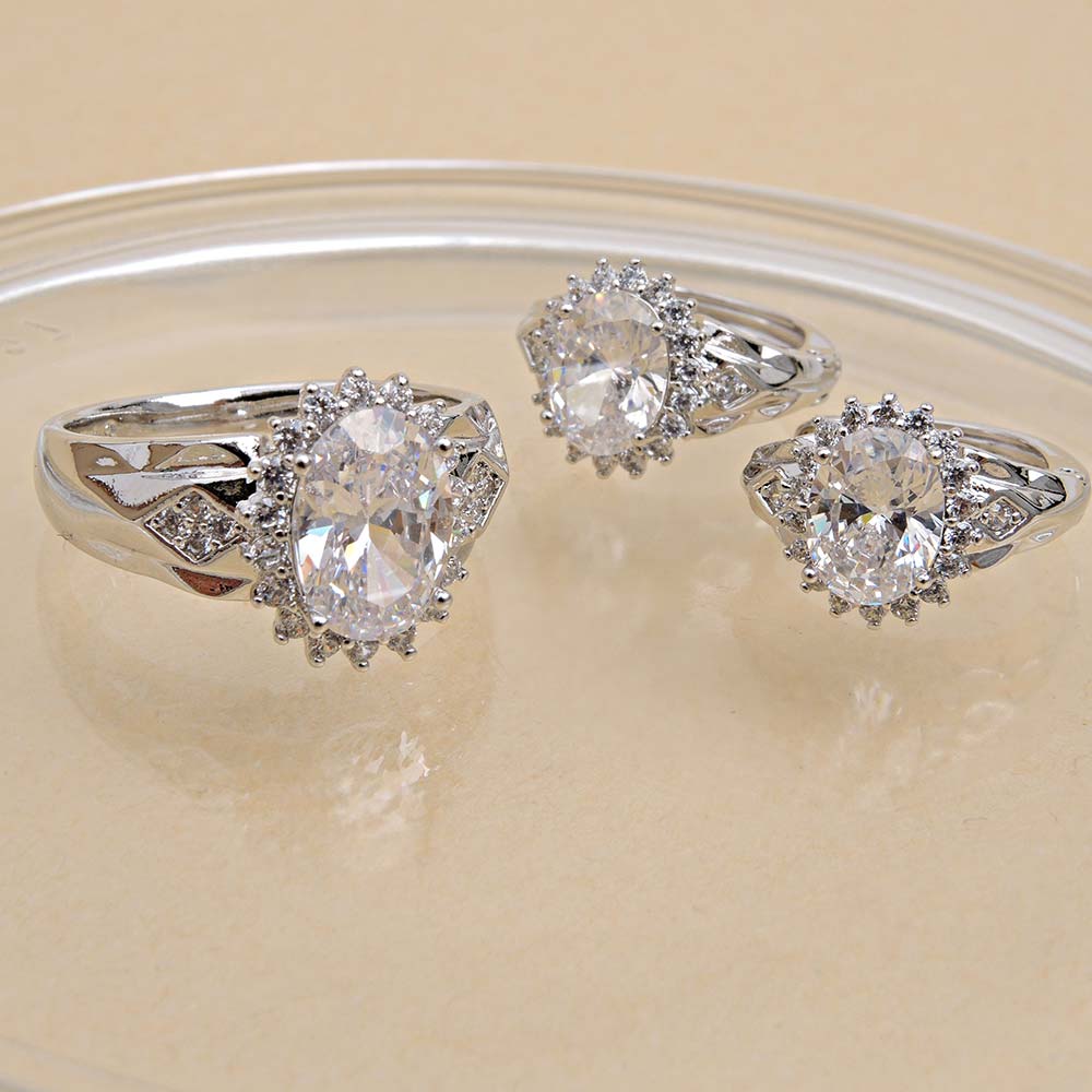 Кольцо с родиевым покрытием с цирконами (фианитами)