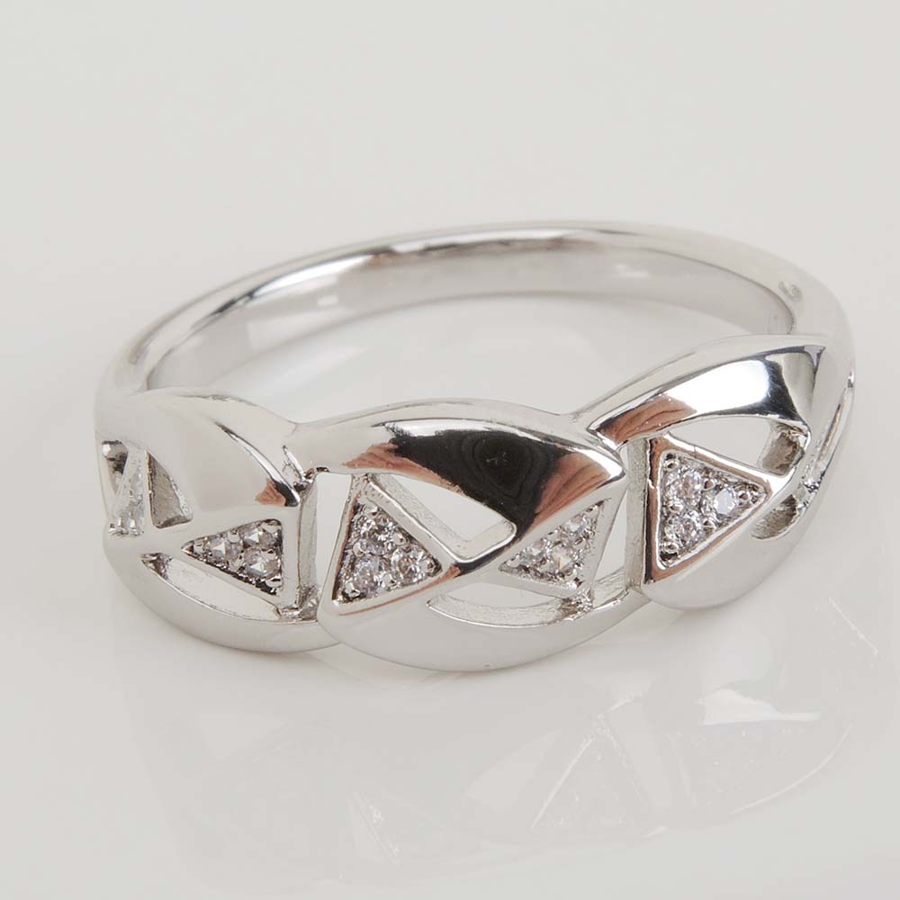 Кольцо/Серьги с английским замком с родиевым покрытием с цирконами (фианитами)