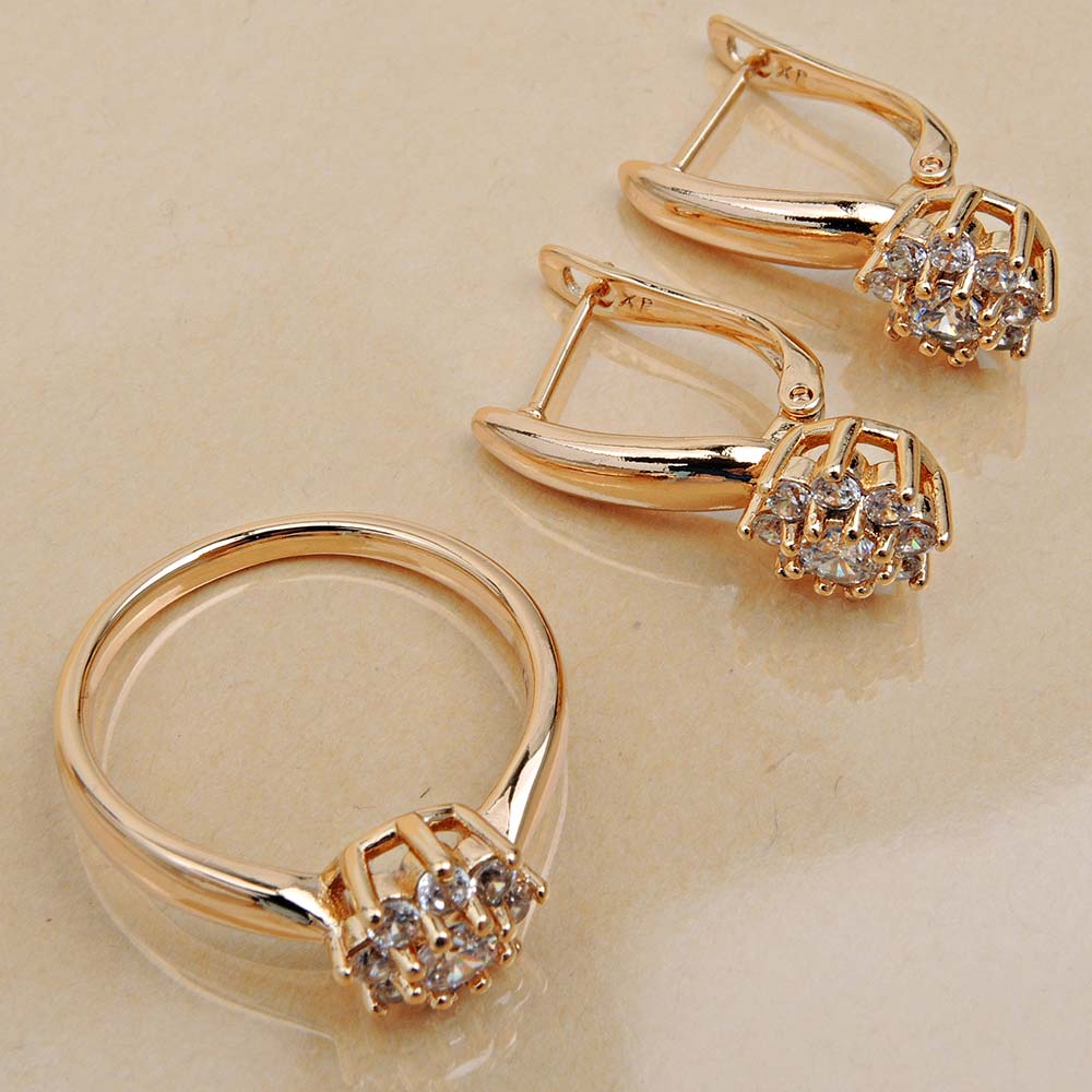 Кольцо/Серьги с английским замком с золотым покрытием 18K 1 мкр с цирконами (фианитами)