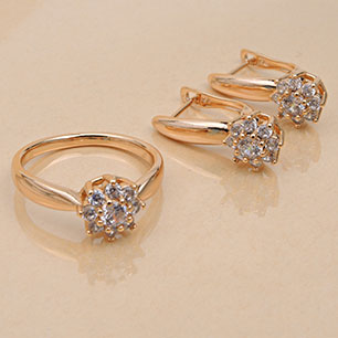Кольцо/Серьги с английским замком с золотым покрытием 18K 1 мкр с цирконами (фианитами)