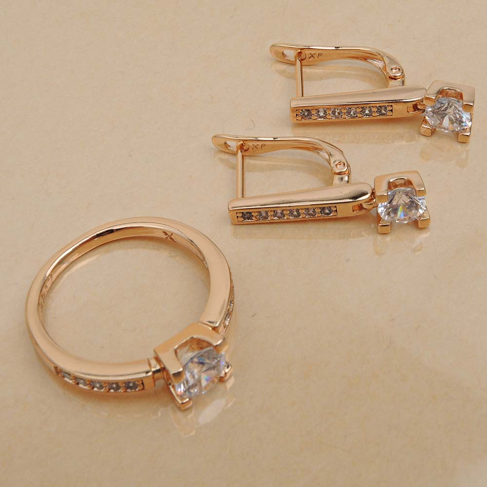 Кольцо/Серьги с английским замком с золотым покрытием 18K 1 мкр с цирконами (фианитами)