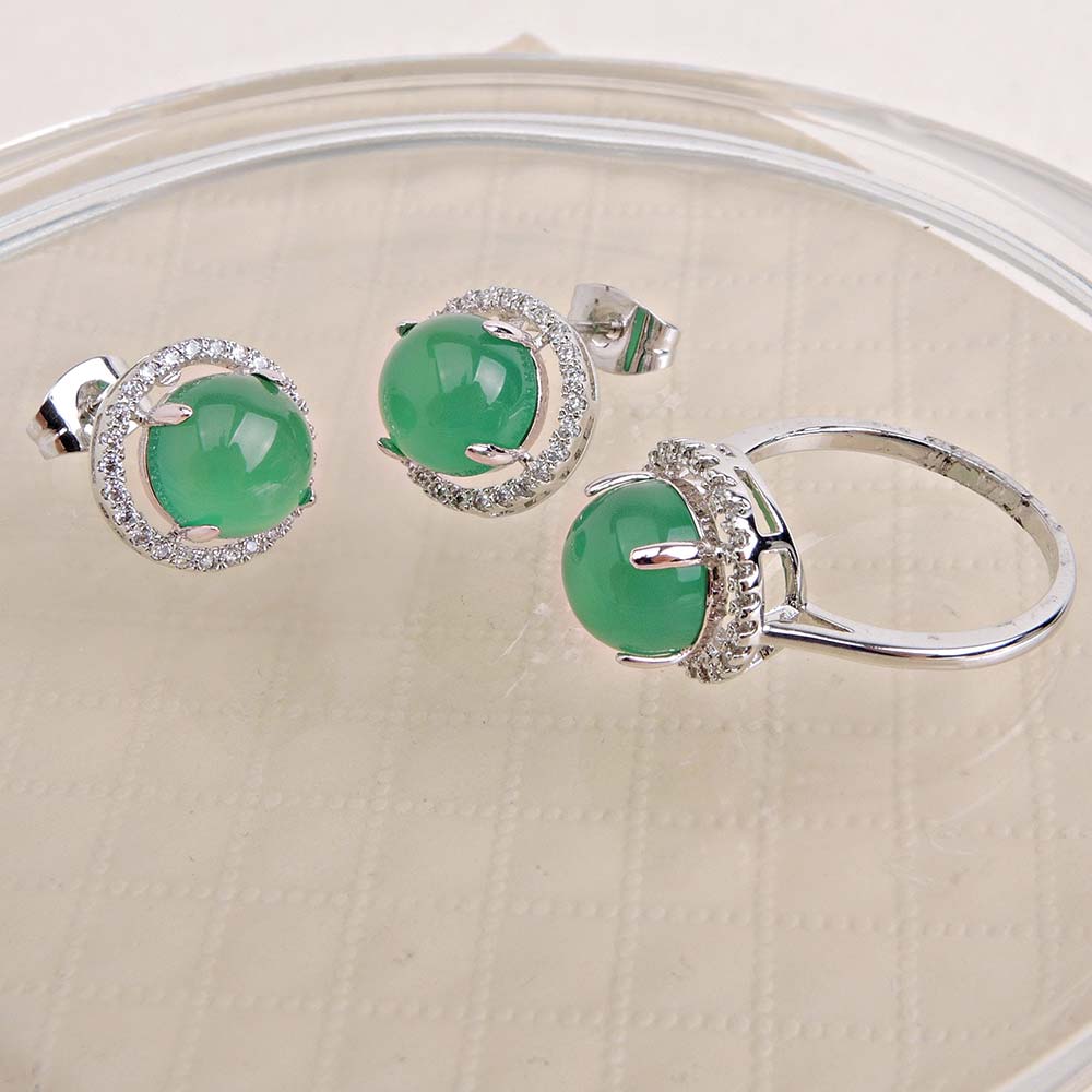 Кольцо/Серьги с родиевым покрытием с натуральными камнями