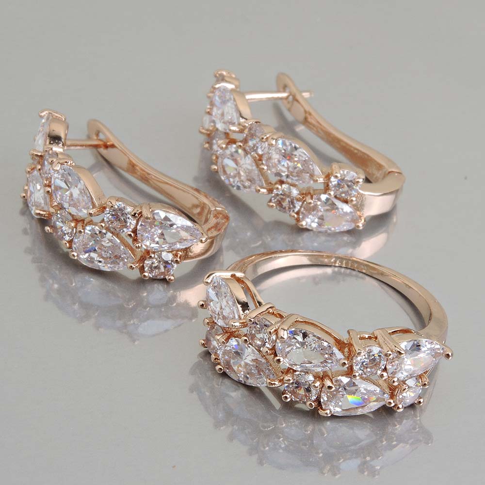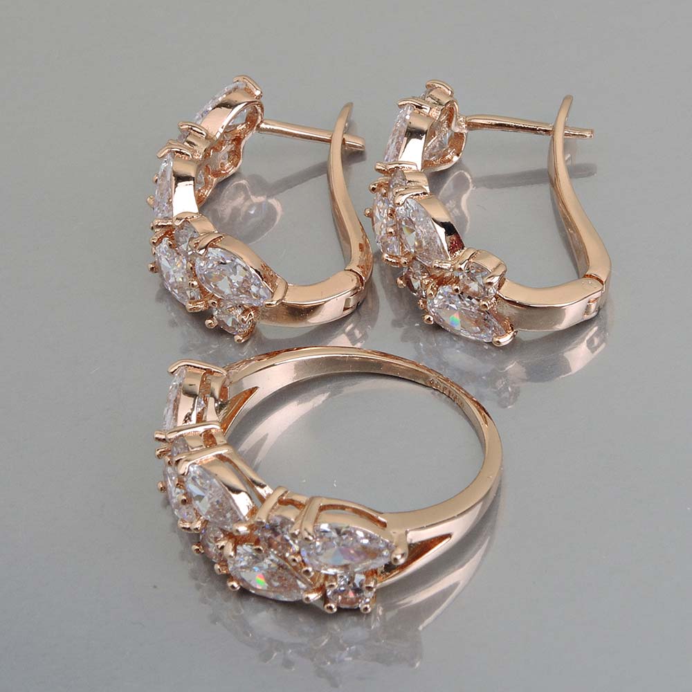 Кольцо/Серьги с золотым покрытием 18K 1 мкр с цирконами (фианитами)