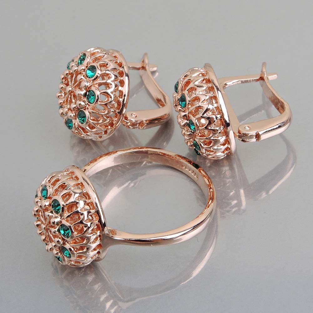 Кольцо/Серьги с золотым покрытием 18K 1 мкр с цирконами (фианитами)