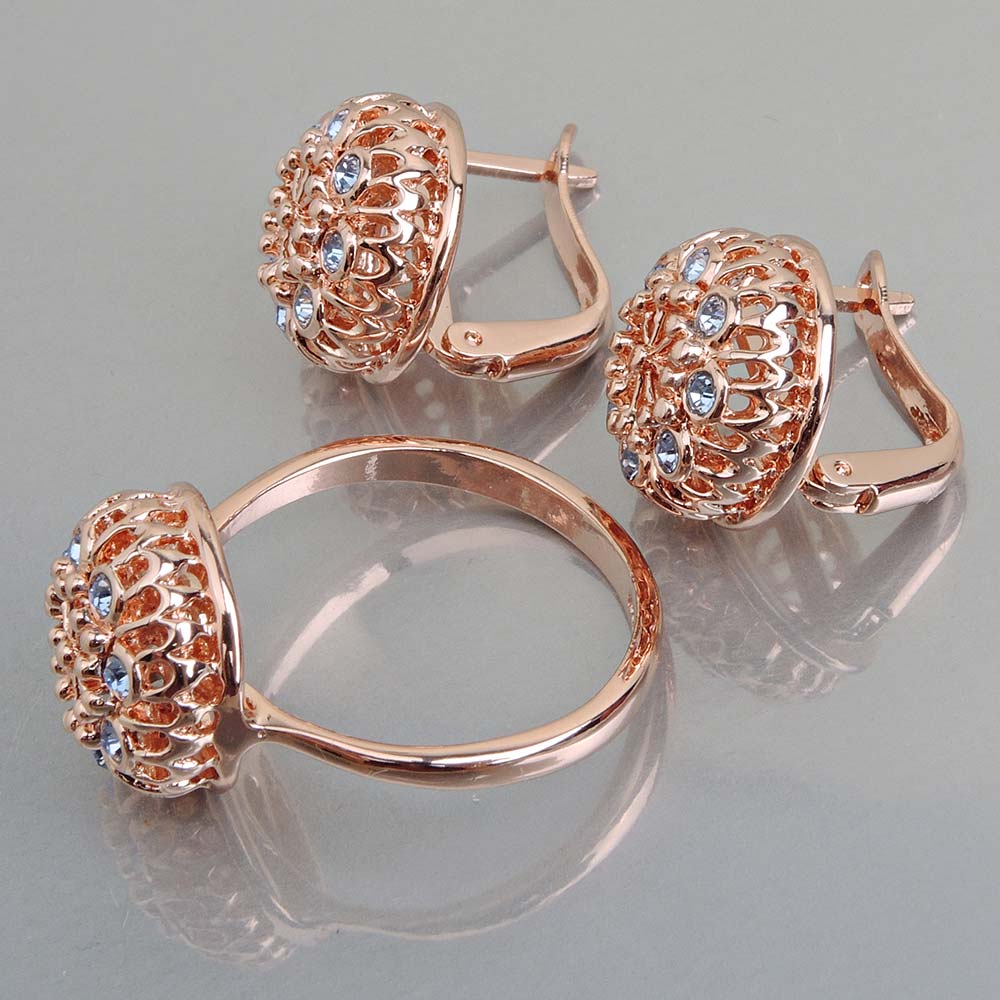 Кольцо/Серьги с золотым покрытием 18K 1 мкр с цирконами (фианитами)