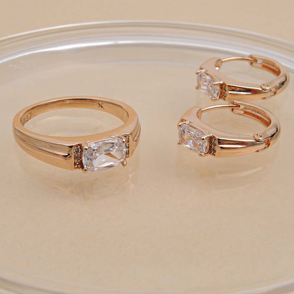 Кольцо/Серьги с золотым покрытием 18K 1 мкр с цирконами (фианитами)
