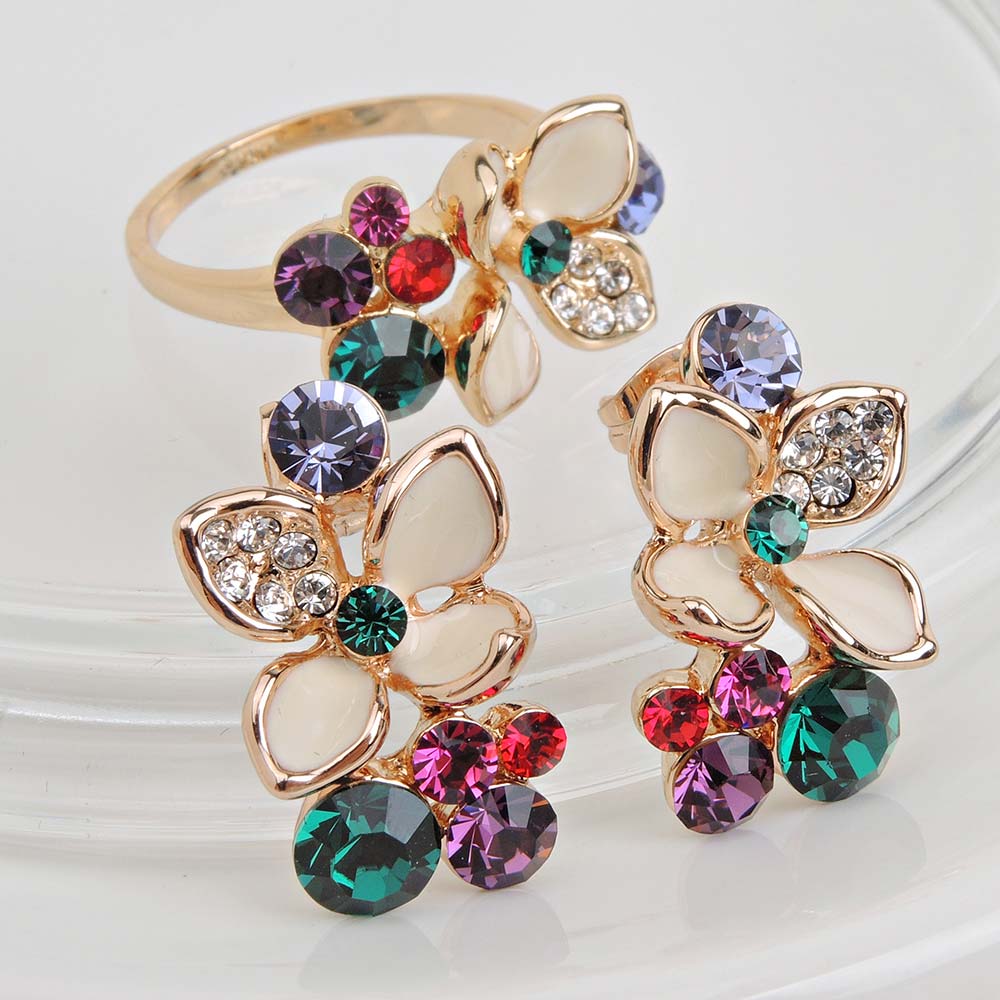 Кольцо/Серьги с золотым покрытием 18K 1 мкр с кристаллами SWAROVSKI