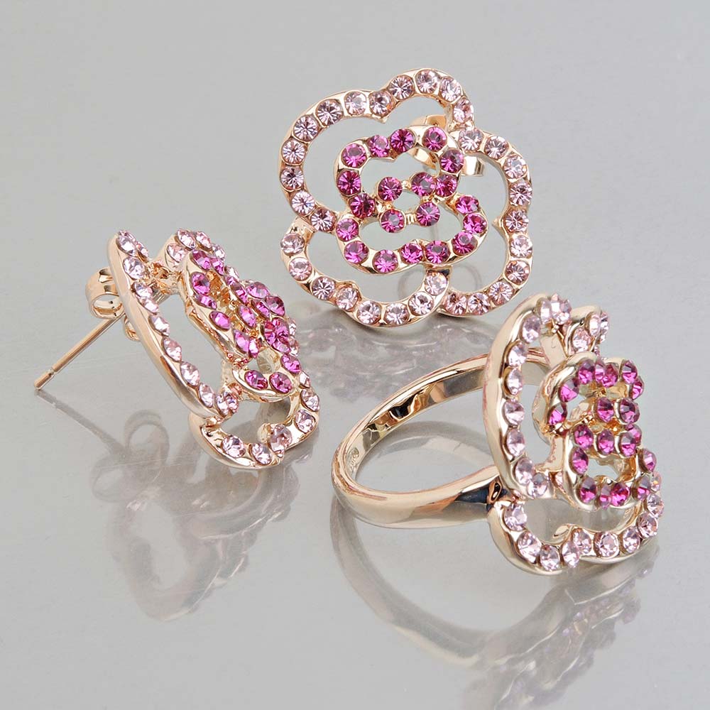 Кольцо/Серьги с золотым покрытием 18K 1 мкр со стразами