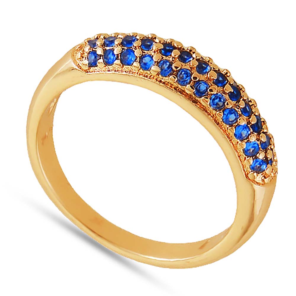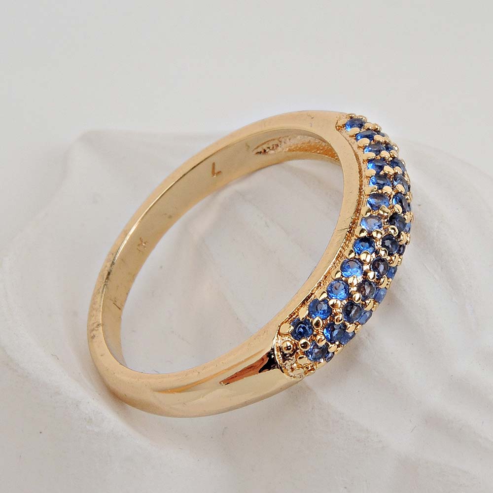 Кольцо синее с золотым покрытием 18K 1 мкр с цирконами (фианитами)