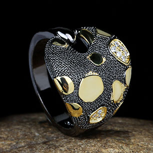 Кольцо в винтажном стиле с цирконами (фианитами)
