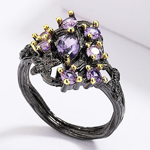 Кольцо в винтажном стиле с эмалью