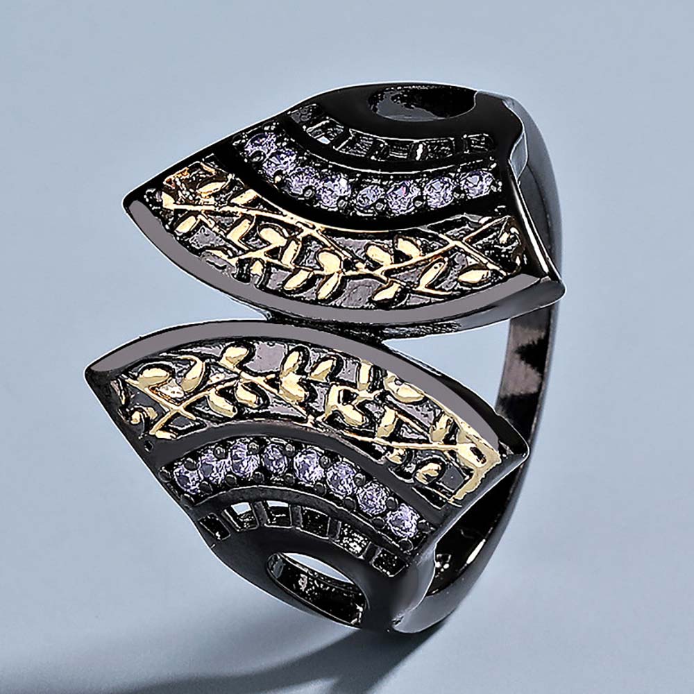 Кольцо в винтажном стиле с родиевым покрытием с цирконами (фианитами)