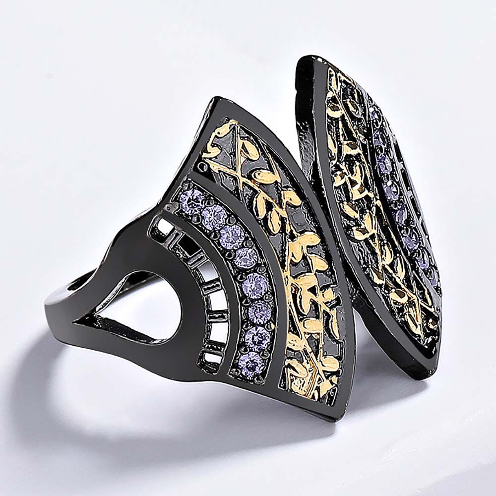 Кольцо в винтажном стиле с родиевым покрытием с цирконами (фианитами)