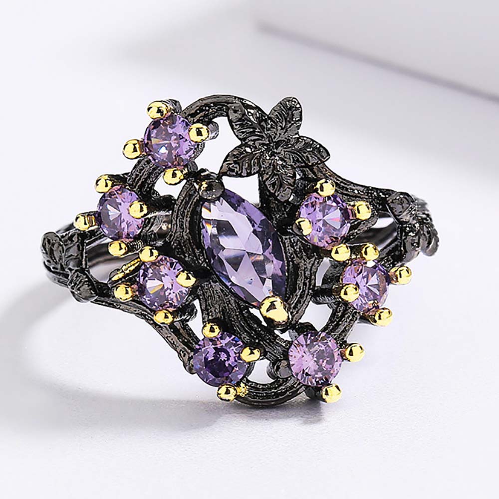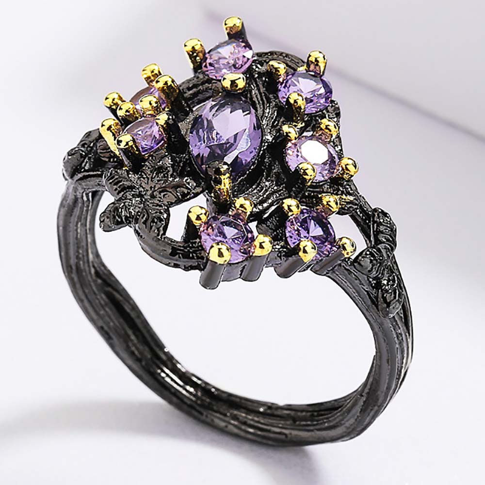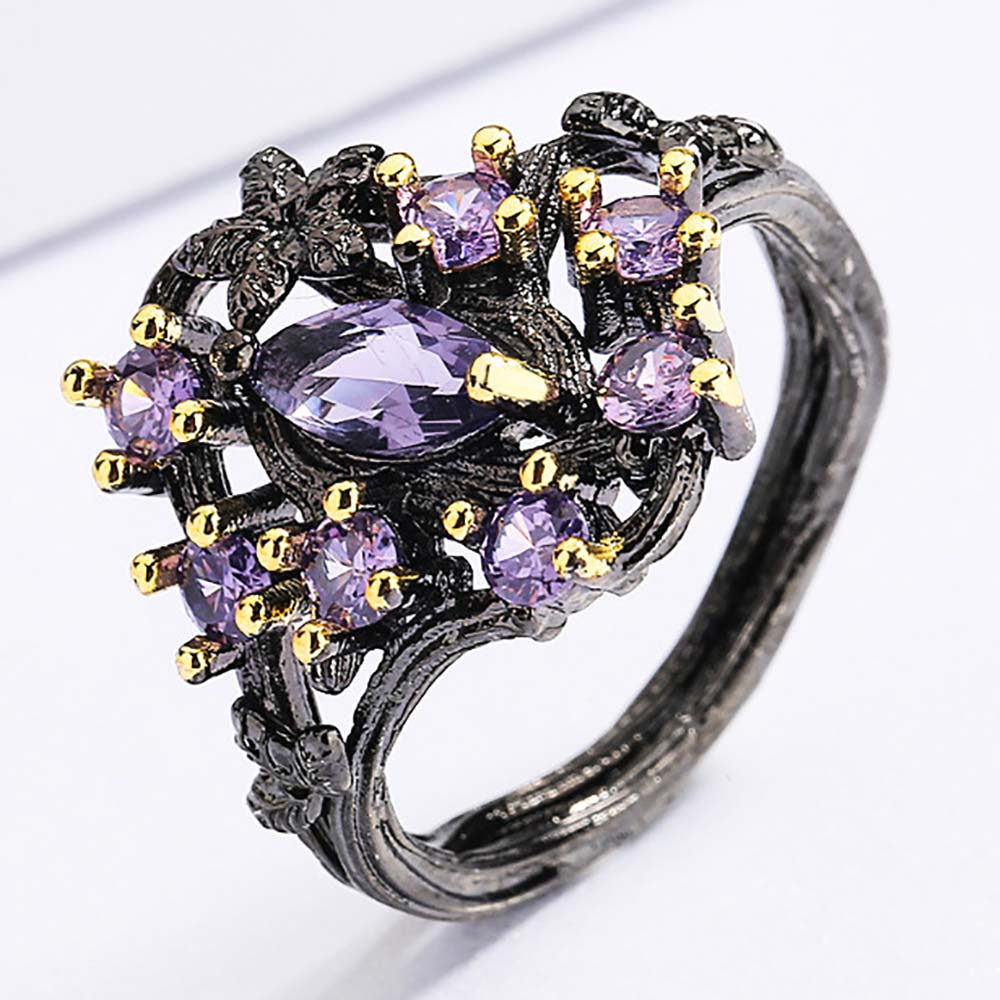 Кольцо в винтажном стиле с родиевым покрытием с цирконами (фианитами)
