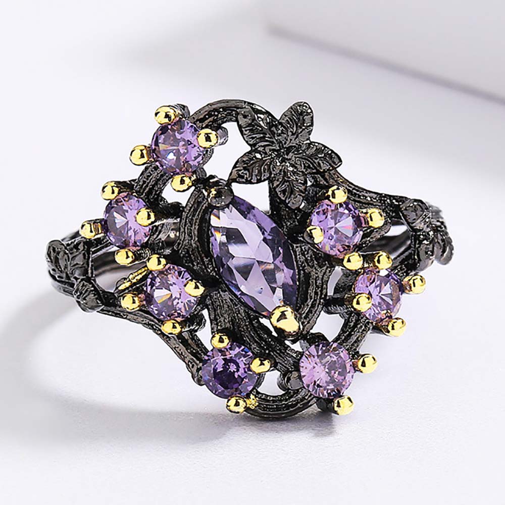 Кольцо в винтажном стиле с родиевым покрытием с цирконами (фианитами)