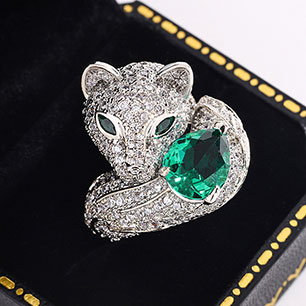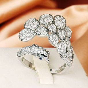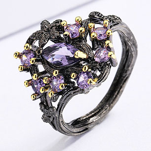 Кольцо в винтажном стиле с родиевым покрытием с цирконами (фианитами)