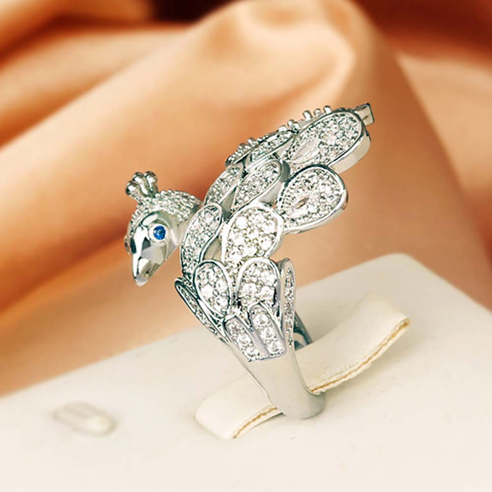 Кольцо в винтажном стиле с родиевым покрытием с цирконами (фианитами)